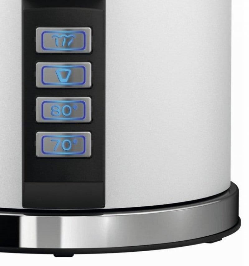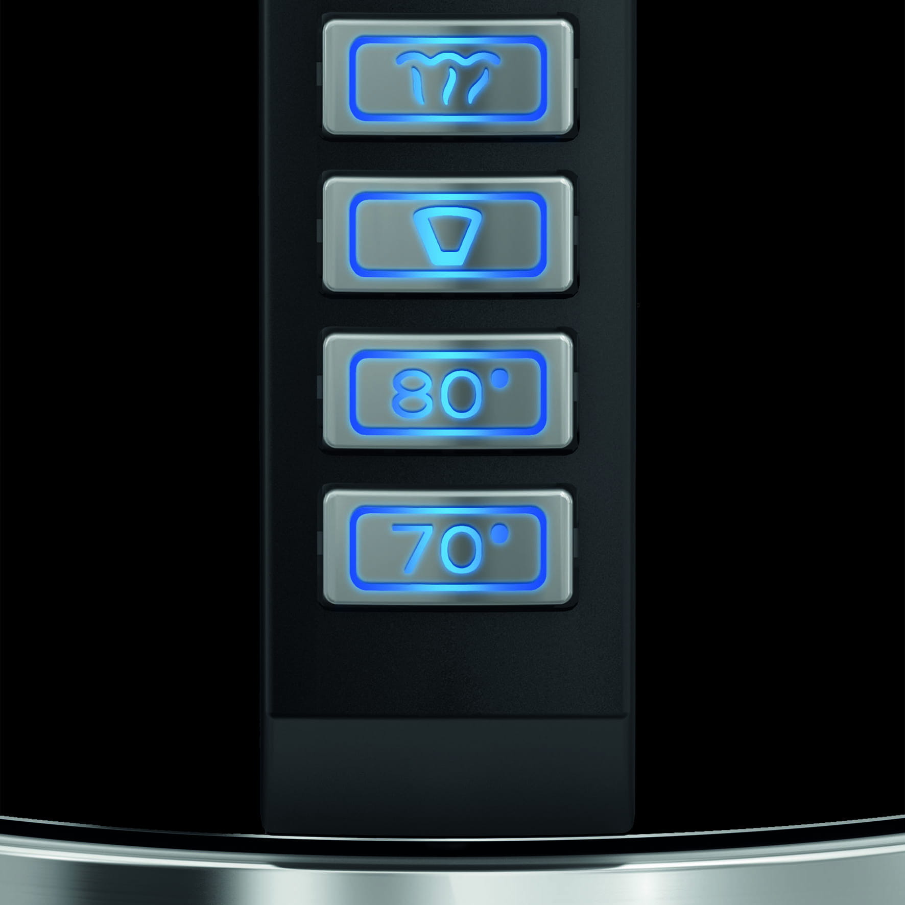 Łatwa intuicyjna obsługa za pomocą elektronicznej regulacji temperatury za naciśnięciem przycisku (70°C, 80°C, przycisk kawy i wrząca woda).
