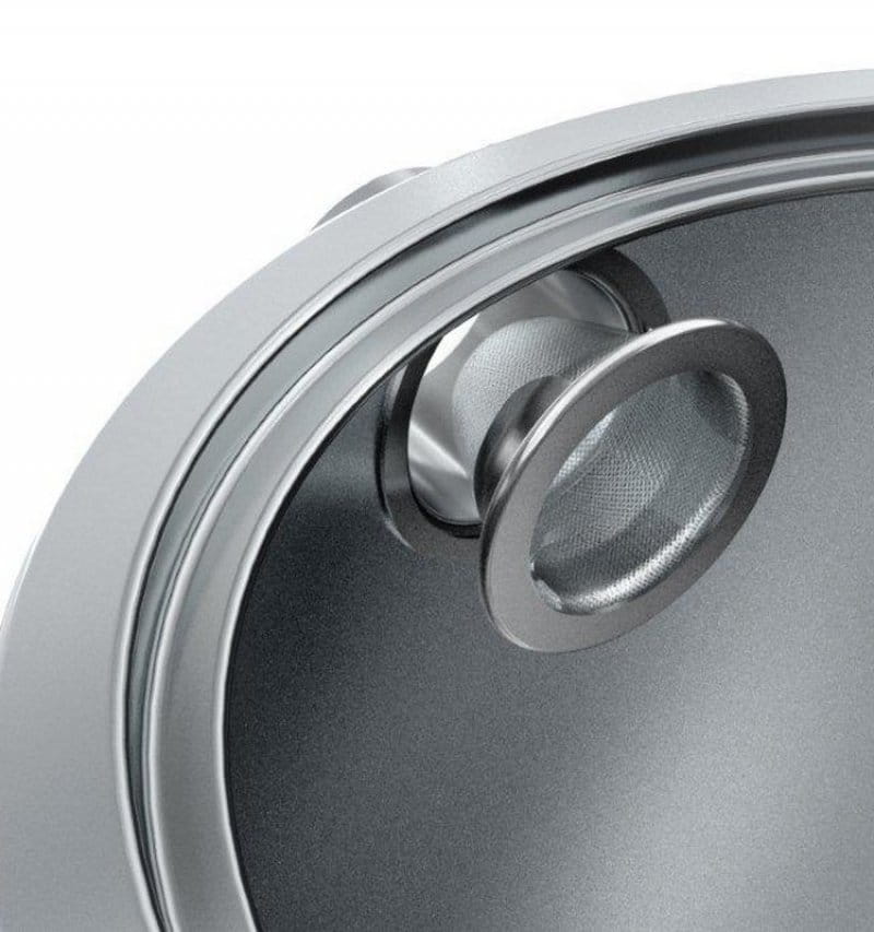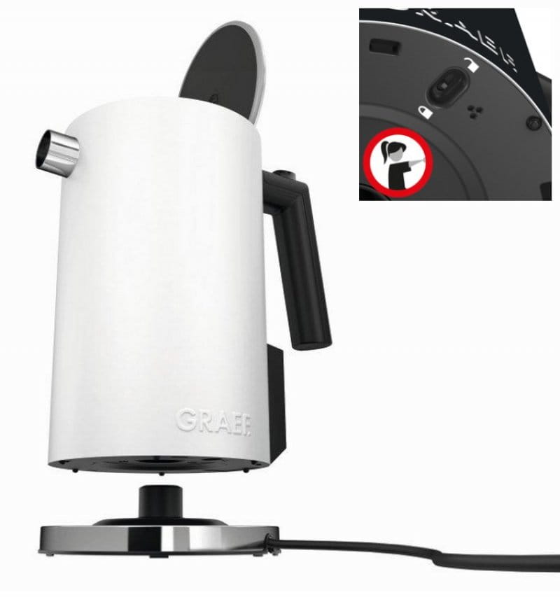Czajnik elektryczny Graef WK 901 został wykonany z wysokiej jakości stali nierdzewnej, którego obudowa posiada podwójne ścianki co przekłada się na nienagrzewającą się obudowę i mniejsze odparowywanie ciepła po podgrzaniu w przeciwieństwie do czajników innych marek. Gładkie stalowe wnętrze i innowacyjny filtr do kamienia ze stali nierdzewnej zapobiegają gromadzeniu się kamienia w trudno dostępnych miejscach oraz zapewniają łatwe czyszczenie.